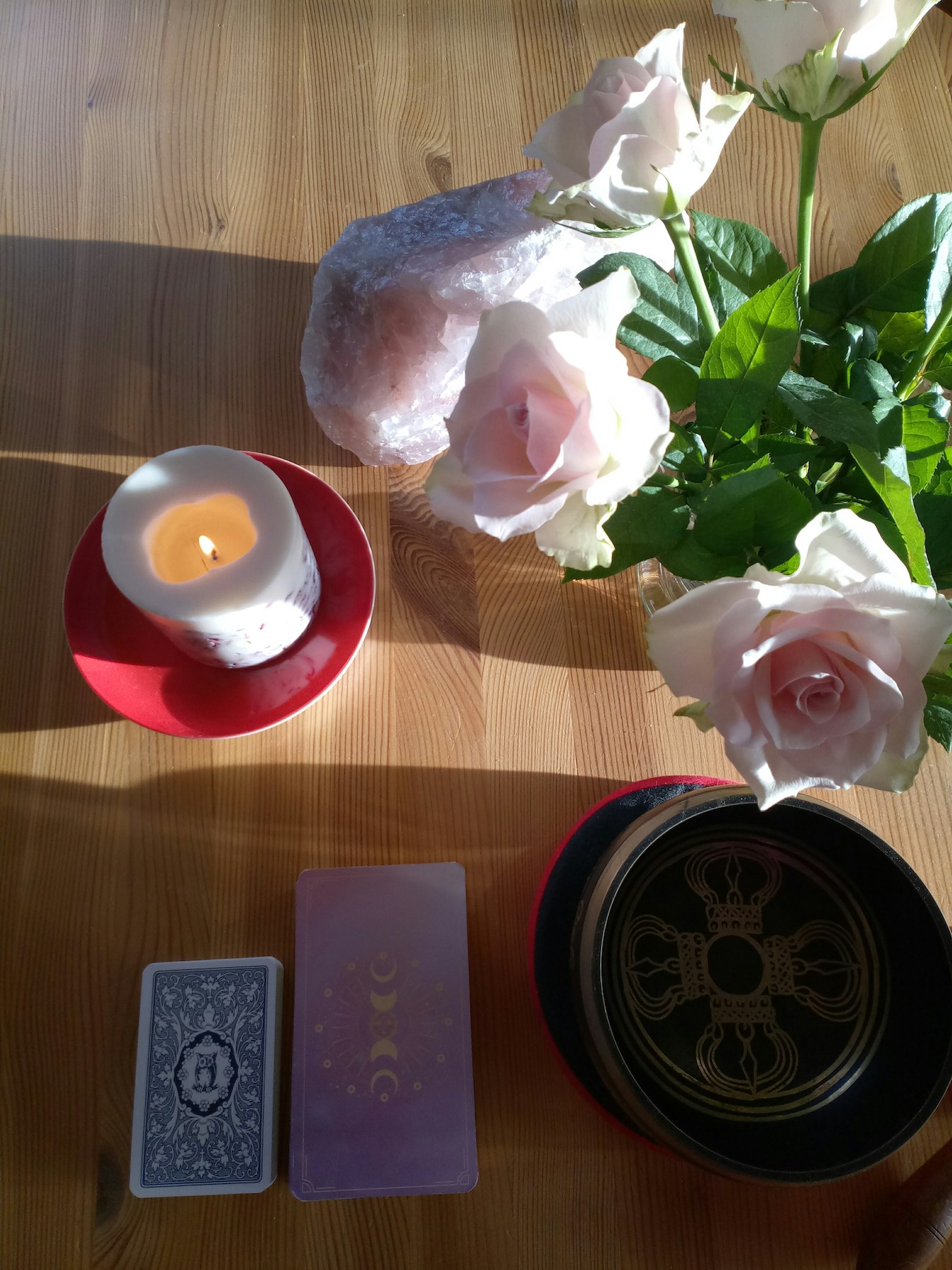 Ich schicke Dir im Vorfeld unseres Termins, wenn du es wünschst, ein Bild von deiner Kartenlegung per Telegram oder E-Mail zu. Anschließend telefonieren wir ca. 1 Stunde, in der ich Deine Legung für Dich deute. Ich nutze dabei Lenormand und Tarotkarten und ergänze diese hin und wieder durch einige Orakelkarten.