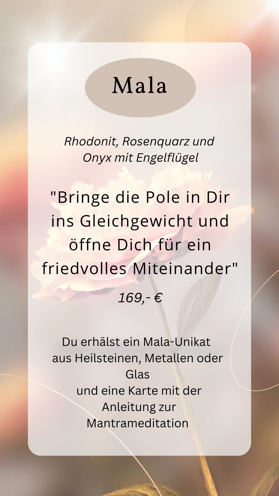 Gerne fertige ich auch Deine persönliche Mala an, die Dich bei Deinem derzeitigen Lebensthema unterstützend begleitet.