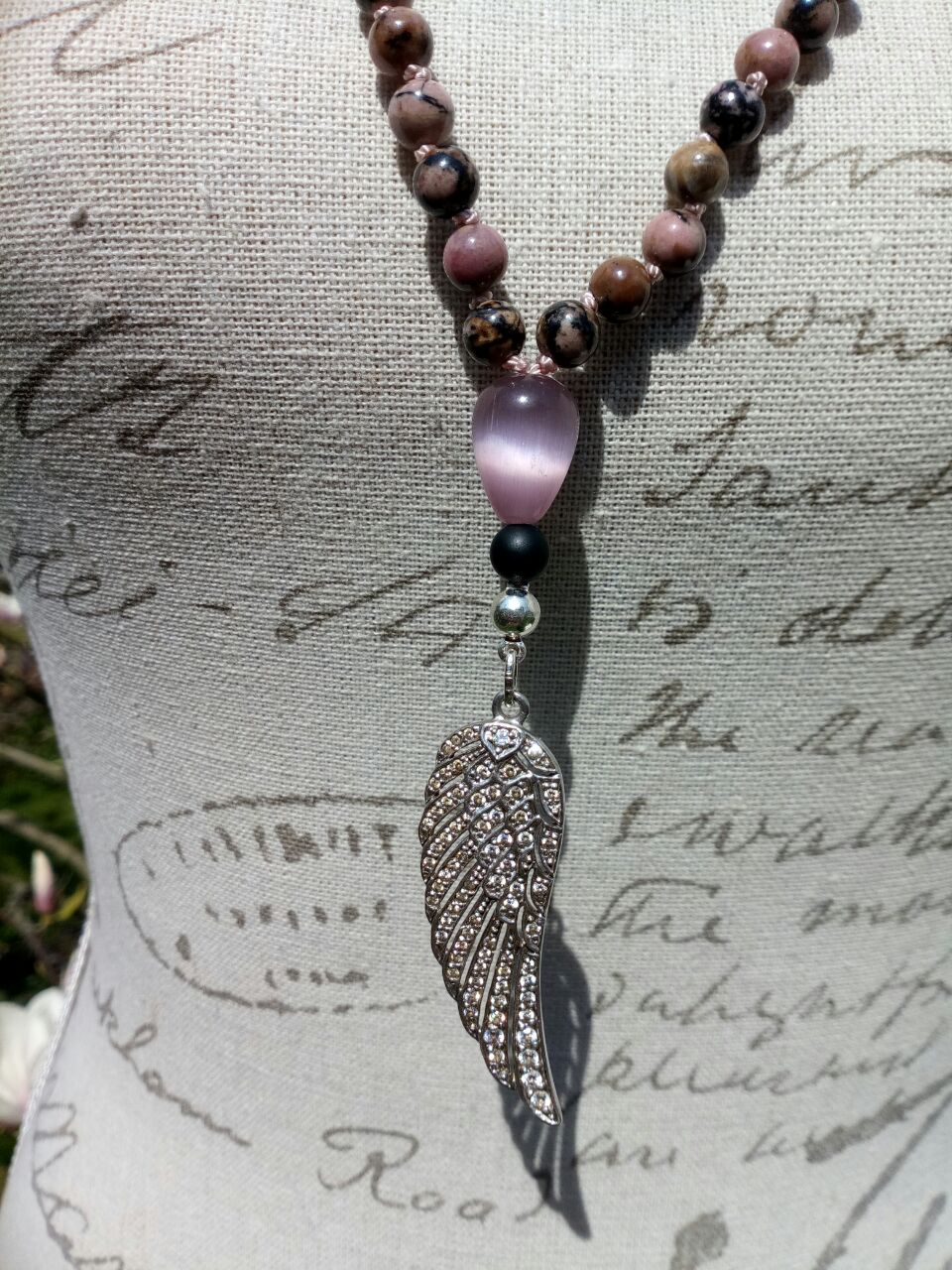 Rhodonit, Rosenquarz und Onyx mit Engelflügel